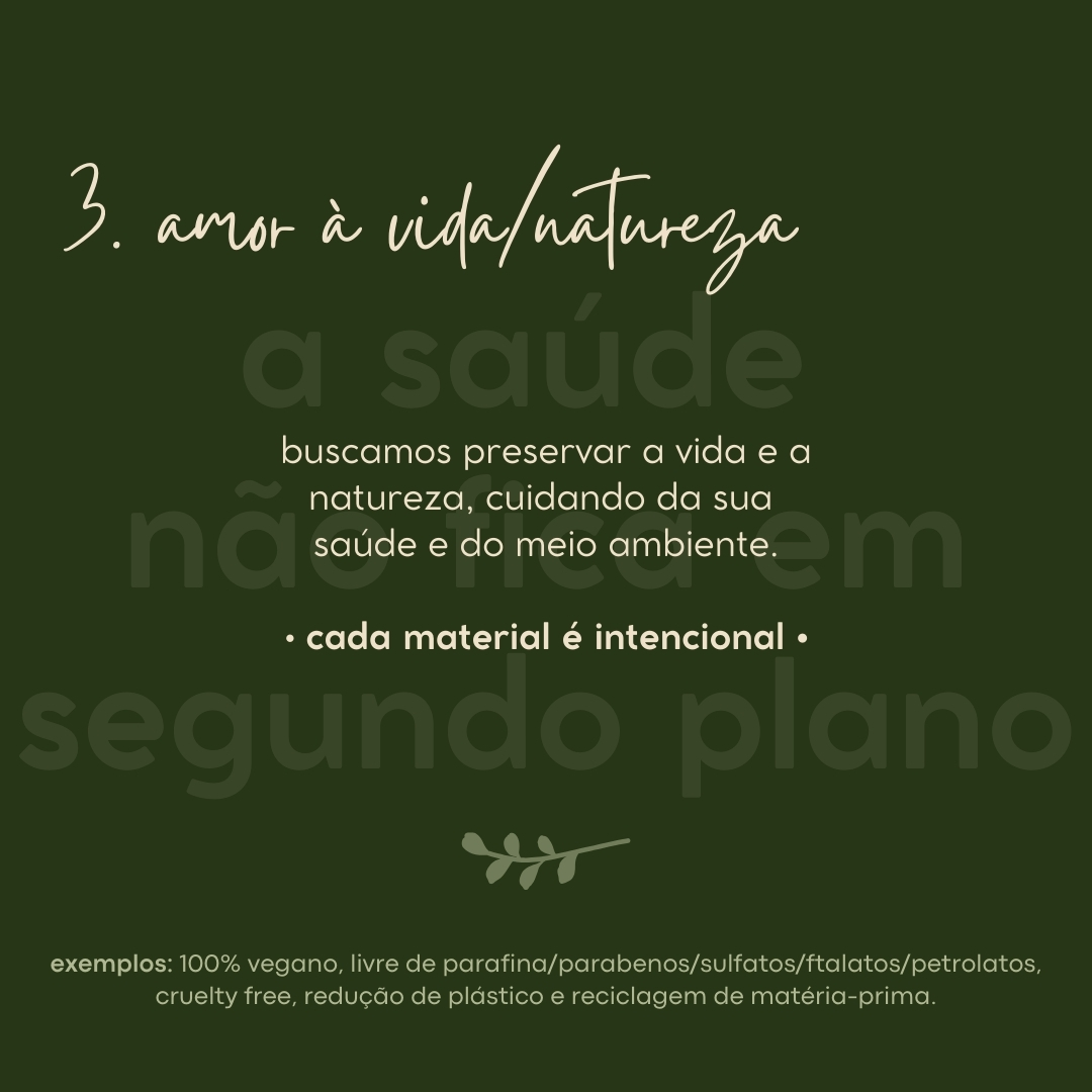 🌱 marca vegana e livre de tudo que faz mal (parafinas, petrolatos, parabenos, sulfatos, ftalatos, etc).