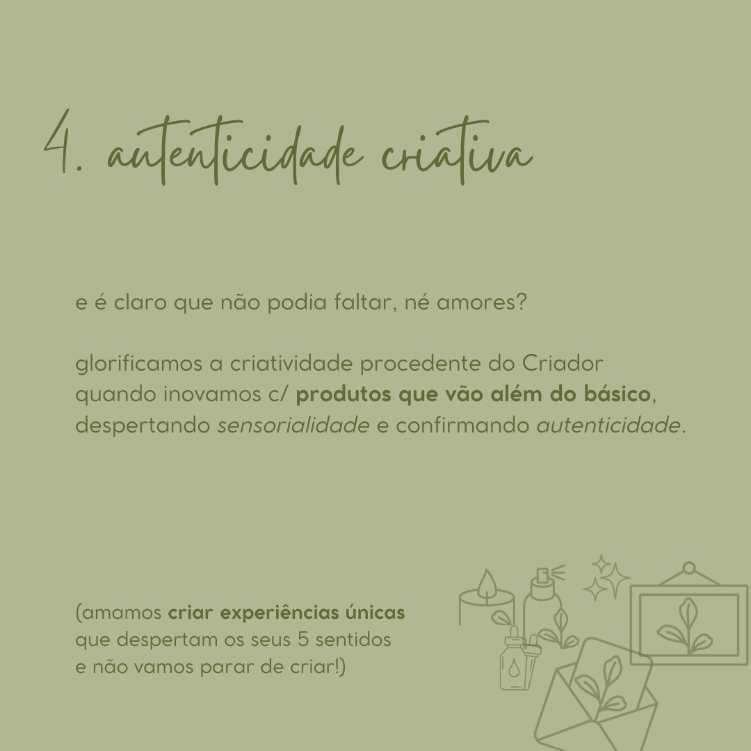 E hoje, AMAMOS criar experiências sensoriais para cada momento da sua vida — desde uma rotina de bem-estar e autocuidado consciente, presentear pessoas especiais de forma personalizada, até eternizar o dia mais importante da sua vida e criar novas memórias! 🫴💚✨